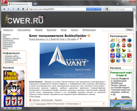 Эта cборка сделана на основе оригинального браузера Opera 10.20.1895 Widget Alpha. В нее встроено много полезных и нужных утилит, облегчающих отображение графики, загрузку файлов, запоминание посещённых сайтов и множество других функций. Используя эту сборку, вы почувствуете все прелести как самого браузера Opera, так и использования наиболее лучших и необходимых ресурсов сети Интернет.