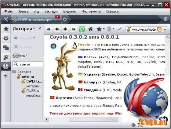 Новая бетка популярного браузера Opera. Компактный и в то же время мощный пакет коммуникационных программ, состоящий из быстрого браузера с многодокументным интерфейсом (MDI), почтовой программы и модуля для получения новостей с веб-сайтов в формате RSS...
