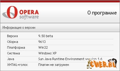 Версия ядра программы: Opera 9.5b (9613) Win32. Сборка полностью портабельная, работает без администраторских прав в Windows XP и Vista.
