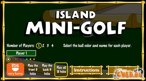 Очередная реализация игры в гольф во флеше. Весьма неплохие графика и физика! Четыре разных персонажа, одиночный или парный режимы. Есть возможность сохранения игры. Восемнадцать полей с разнообразными препятствиями (вода, песок, горки и т.д.).