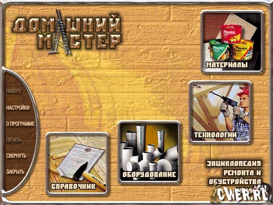 На этом диске представлена полная энциклопедия ремонта и обустройства жилого дома. Насчитывает свыше 1000 статей и 3000 иллюстраций. Руководствуясь ею, вы легко сможете самостоятельно провести как полный, так и косметический ремонт вашего жилища, установить различное оборудование, провести электропроводку и технические коммуникации.