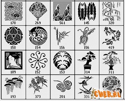 8 красивых кисточки размером от 300 до 1500 пикселей на японскую тему