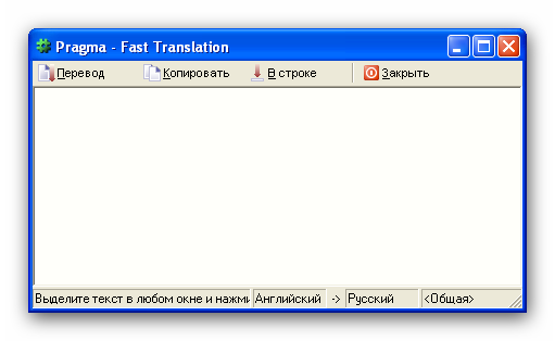 Pragma - это многоязычная программа машинного перевода для перевода текстовых документов с одного языка на другой. Программа поддерживает семь языков: английский, русский, украинский, немецкий, латышский, польский и французский. Pragma выполняет перевод непосредственно в окне активного приложения или в отдельном окне быстрого перевода. С помощью программы можно переводить текстовую информацию, представленную в виде документов MS Word, Интернет страниц, почтовых сообщений, справок, а также содержимое различных текстовых окон. За счет автоматизации многих функций Pragma 5 очень проста в использовании.