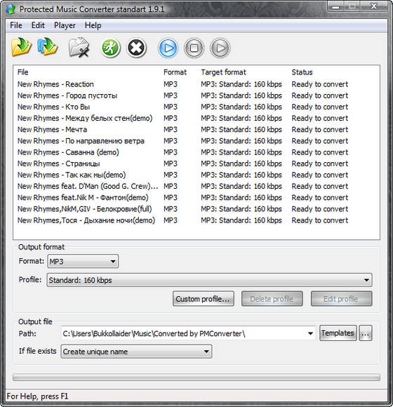 Protected Music Converter – это программное приложение, которое вы можете использовать для конвертирования широкого спектра различных аудио форматов в наиболее используемые форматы, такие как: MP3, OGG, WMA, WAV. Данная программа особенно полезна в случае, если у вас есть защищенные музыкальные файлы и вы хотите прослушать их на портативном проигрывателе, который не поддерживает технологию DRM, такие как: CD проигрыватели, iPod, Zune и другие портативные цифровые проигрыватели, сотовые телефоны, карманные компьютеры и т.д.