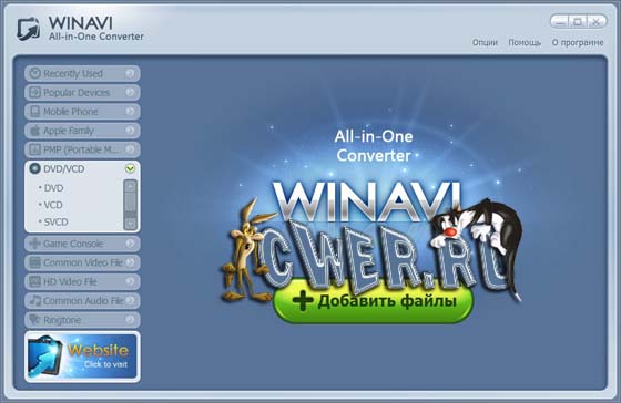 WinAVI All-In-One Video Converter является профессиональным видео и аудио конвертером. Все видео и аудио форматы могут быть преобразованы между собой.