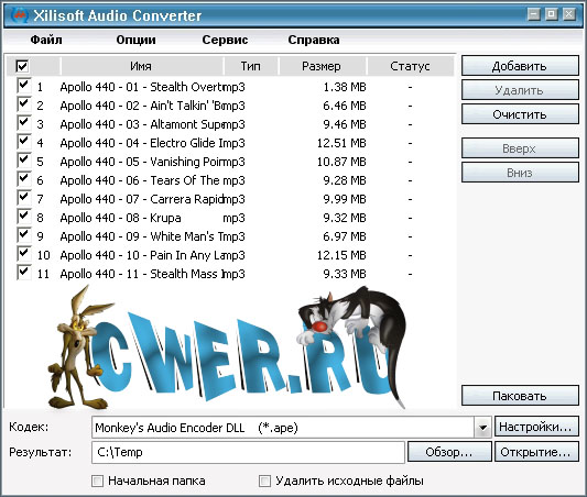 ImTOO Audio Maker - программа из разряда все в одном - это и аудио конвертер, граббер аудио CD, прожиг аудио CD. Особенностью данной программы является поддержка MPEG, WMV, ASF, AVI, MOV, MP3, 3GP, RM, MP2, MP3, WMA, WAV, AU, M4A, RA, OGG, AAC, AC3, MPG, DAT, VOB, QT и других аудио форматов. Конвертор между форматами, производит пакетный режим конвертирования, извлекает аудио из видео файлов, аудио из аудио CD, создает и прожигает аудио CD, создает и редактирует ID3 (ID3V1, ID3V2) тэги, высокая скорость и качество, приятный и простой интерфейс.