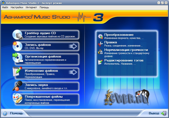 Ashampoo Music Studio - полноценный пакет для работы с аудио файлами. Программа позволяет копировать аудиодорожки на жесткий диск в форматах WMA, MP3, Ogg, FLAC и WAV, создавать плейлисты, записывать диски различных форматов, редактировать аудиодорожки и многое другое.