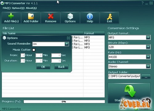 Reezaa - легкий в использовании конвертер работающий по принципу "всё-в-MP3". При помощи Reezaa Вы можете конвертировать любой аудио- или видефайл в MP3-формат.