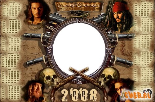 Очень красивый календарь с героями фильма Пираты Карибского моря. Имеется место для вашей фотографии.