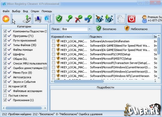 Wise Registry Cleaner Pro - профессиональная версия безопасной утилиты для чистки реестра Windows. Программа сканирует реестр и ищет в нем некорректную и устаревшую информацию, после удаления которой операционная система работает более быстро. После того, как программа проанализирует проблемы вашей системы, вы можете сами просмотреть каждую найденную неполадку и посмотреть ее детальное описание. Имеется возможность автоматической корректировки таких проблем. Все изменения, внесенные программой в реестр, могут быть отменены за два клика мышью. Также стоит отметить, что интерфейс программы переведен на множество языков, включая русский язык.