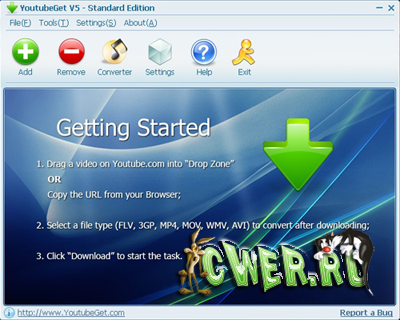 YoutubeGet - набор утилит, созданный для простого и легкого скачивания видео с YouTube и их быстрого конвертирования. Предлагая множество методов для получения видео-ролика, программа обладает всеми нужными функциями, но все же остается простой и легкой в использовании. После скачивания, видео будет автоматически конвертировано в один из поддерживаемых форматов таких, как MP4, 3GP, AVI, WMV, MOV и другие форматы, после чего вы сможете просмотреть эти видео на своем мобильном телефоне, компьютере или видео-плеере. Программа обладает множеством возможностей и функций, которые помогут вам заполучить желанное видео.