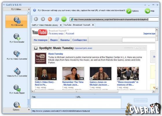 GetFLV - это сборник из 7 модулей, который позволяет призводить весь спектр операций с .flv файлами. GetFLV Pro позволяет скачивать, управлять, конвертировать в различные форматы и из различных форматов, извлекать звук, восстанавливать и воспроизводить FLV видео.