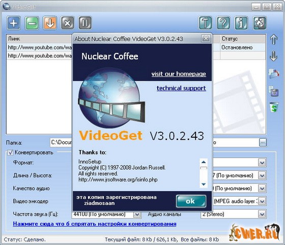 VideoGet - программа для скачивания видео клипов с больше чем 100+ видео веб-сайтов (YouTube, Yahoo Video, MySpace, VSocial, Metacafe, и много-много других). Многие из этих веб-сайтов держат видео в FLV формате, и большинство людей не знает как проигрывать эти файлы, VideoGet позволит вам конвертировать все видео в множество популярных форматов для более комфортного проигрывания. VideoGet поддерживает AVI, MPEG1, MPEG2, WMV, FLV, MP4, 3GP, MP3 форматы, так что вы имеете возможность не только посмотреть видео на своем компьютере, но и переписать его на свой iPod, мобильный телефон или любой другой портативный прибор. Кроме того вы самостоятельно можете задавать настройки конвертации.