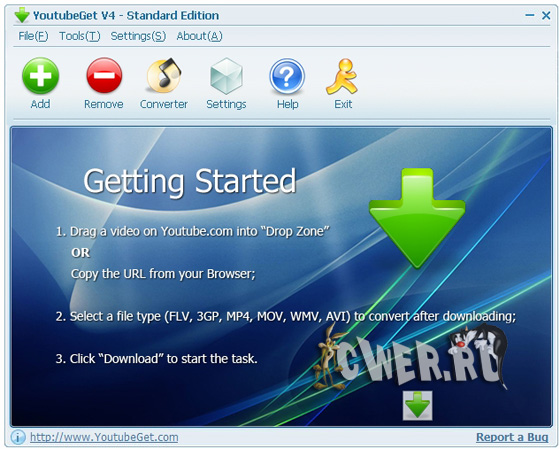 YoutubeGet - набор утилит, созданный для простого и легкого скачивания видео с YouTube и их быстрого конвертирования. Предлагая множество методов для получения видео-ролика, программа обладает всеми нужными функциями, но все же остается простой и легкой в использовании. После скачивания, видео будет автоматически конвертировано в один из поддерживаемых форматов таких, как MP4, 3GP, AVI, WMV, MOV и другие форматы, после чего вы сможете просмотреть эти видео на своем мобильном телефоне, компьютере или видео-плеере. Программа обладает множеством возможностей и функций, которые помогут вам заполучить желанное видео.