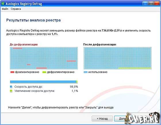 Auslogics Registry Defrag - программа для дефрагментации реестра операционной системы. Позволяет ускорить работу Windows за счет дефрагментации реестра, оптимизации размещения информации в нем, а также благодаря исправлению ошибок, накапливающихся в реестре в процессе его долгой эксплуатации.