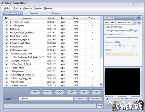 Xilisoft Audio Maker - это многофункциональная программа - аудио конвертер, риппер музыкальных CD и программа для записи аудио CD дисков. С данной программой вы сможете конвертировать, извлекать треки - rip , и записывать музыкальные CD легко, быстро, с превосходным качеством. Сравнивая с другими продуктами этого класса, отметим, что Xilisoft Audio Maker имеет большее количество функций и характеристик.
