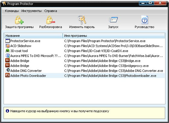 Program Protector - это утилита, позволяющая ограничить доступ к любым установленным в системе приложениям. Пользователь просто выбирает программу, задаёт пароль доступа к ней, и при следующем ее запуске появляется диалоговое окно, в котором и нужно ввести пароль. Поддерживает 256-битное шифрование и длину пароля до 20 символов.