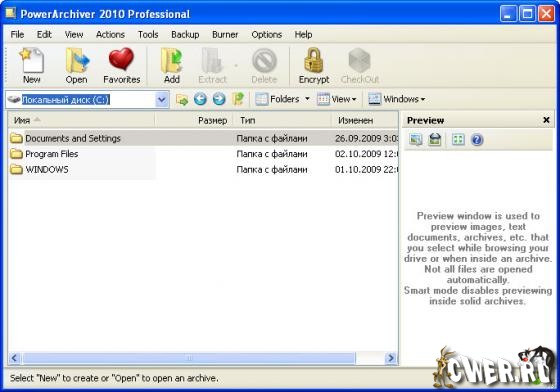 PowerArchiver - этот мощный архиватор полностью поддерживает работу со следующими форматами: ZIP ( в том числе Quake III Pk3, JAR - JavaARchiver, OWK, REP), CAB, 7-zip, LHA, LZH, TAR, TAR.GZ, TAR.BZ2 и BH (BlakHole), а также позволяет просматривать и извлекать файлы из архивов RAR (включая v.3), ACE (в т.ч. v.2.0), ARJ, CAB, LHA, TAR, GZIP, BZIP2, ARC, ZOO, BH. Кроме этого, поддерживается чтение и извлечение файлов из образов ISO, BIN, IMG и NRG. Не являются лишними и встроенная в программу поддержка просмотра файлов очень многих форматов - TXT, RTF, ICO, WMF, EMF и 18 графических, а также опции быcтрой загрузки сжатых файлов на FTP-сервер или их отправки по e-mail.