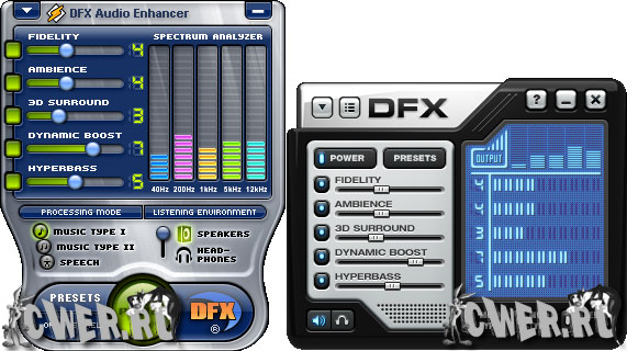DFX Audio Enhancer - плагин для улучшения качества звучания плееров Winamp, Windows Media Player, MusicMatch JukeBox, Musicmatch, RealPlayer, J. River Media Center, Yahoo! Music Jukebox. C помощью DFX устраняются два главных недостатка - срез высоких частот и недостаточное разделение стереобазы и ее глубины. Есть хорошая подборка заранее заготовленных настроек, то есть пресетов. Проще его можно назвать как модный расширенный эквалайзер, с настройками, которых нет в плеерах.