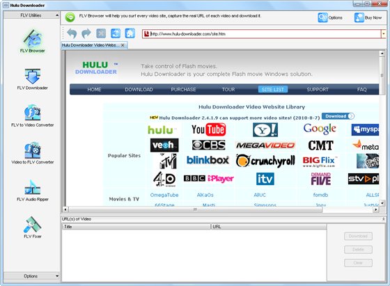 Hulu Downloader - представляет собой мощную утилиту для Windows, которая позволяет легко захватывать Flash фильмы, скачивать видео Hulu из Интернета, сохранять его на жестком диске, организовывать его, а также воспроизводить его, когда вы хотите, даже не будучи подключенным к Интернету. Hulu Downloader работает в фоновом режиме и скачивает фильмы быстро и безупречно. Программа также может загружать, конвертировать и играть Hulu видео и другие Flash Video (.FLV) файлы и является удобным инструментом для конвертации скачанных файлов FLV в различные популярные форматы: AVI, MPEG, MP4, 3GP, MOV, WMV и т.д.
