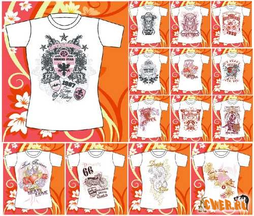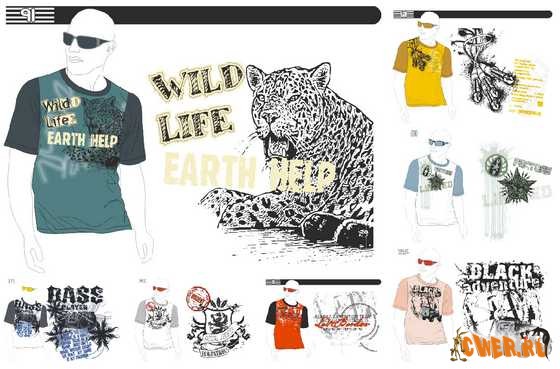 58 Эскизов в векторном формате EPS для нанесения изображений на футболки + превью