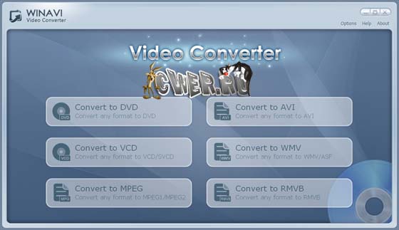 WinAVI Video Converter – мощная и простая в использовании утилита, которая позволяет с легкостью конвертировать видео файлы из одного формата в другой (включая, AVI, MPEG1/2/4, VCD/SVCD/DVD, DivX, XVid, ASF, WMV, RM, QuickTime MOV, Flash SWF). Имеется опция записи VCD/SVCD/DVD дисков. Благодаря усовершенствованному движку компрессия/декомпрессия AVI на DVD происходит менее чем за 1 час.