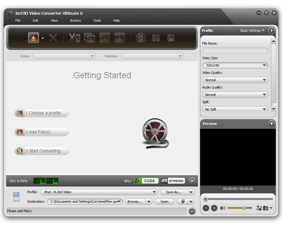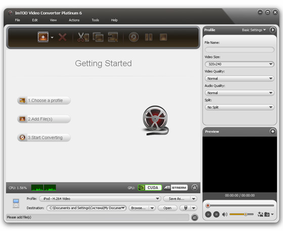 ImTOO Video Converter Ultimate - программа позволяет конвертировать видео. Поддерживает работу практически со всеми популярными видео форматами, такие как: AVI, WMV, MPEG-1/2/4, MOV, 3GP, ASF, MP4, MP2, MP3, WMA, WAV, M4A, AAC, AC3 и OGG, с возможностью кодирования и декодирования High-Definition видео.