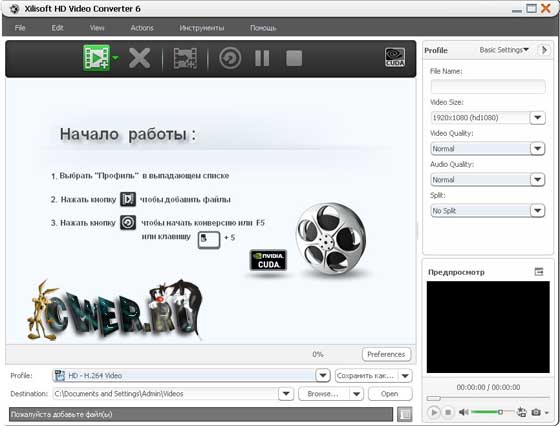 Xilisoft HD Video Converter - мощный, универсальный видео конвертер, с улучшенной HD (High-Definition) технологией конвертирования видео. Программа можно легко выполнять конвертирование между форматами HD видео, конвертировать видео в HD, преобразование HD видео на SD (стандартной четкости) видео. HD Video Converter поддерживает большинство HD видео форматов, таких как AVCHD (МТС, m2ts), H.264/AVC, MKV, MPEG-2 (TS), DivX, WMV HD, MPEG-4 и Quick Time. А теперь программа поддерживает и технологию NVIDIA® CUDA™.