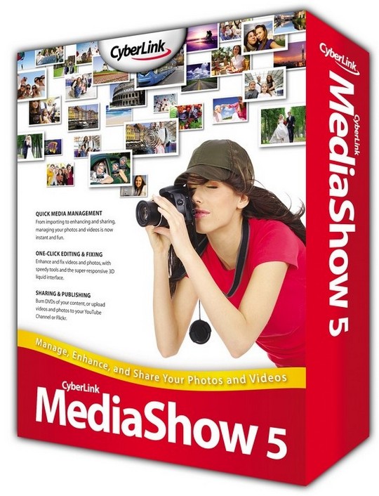 CyberLink MediaShow - мощное профессиональное решение для создания и записи на DVD фото слайд-шоу. Данное приложение позволяет работать с цифровыми изображениями, полученными практически из любых источников - фотокамер, видеокамер, мобильных телефонов и других источников, а привлекательный и удобный 3D-интерфейс облегчает работу с цифровыми ресурсами, поиск и навигацию по альбомам, сортировку архивов. Программа осуществляет автоматическую сортировку, поиск и просмотр детализированных превью. MediaShow позволяет быстро и профессионально отредактировать цифровые фотографии, исправляя такие недостатки, как недостаточная выдержка и неравномерное освещение, устранение эффекта красных глаз и настройку контрастности. В последней версии используется программа PhotoNow!, обеспечивающая передовые функции фоторедактирования, включая автоматическое исправление снимков и удаление эффекта.