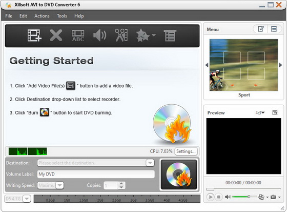 Xilisoft DVD Creator - программа для создания и записи (прожига) DVD с простым и удобным интерфейсом. Основные возможности: создание DVD с полноценными меню и субтитрами из AVI, MPEG, WMV, DV, DivX, XviD, VOB, 3GP, 3G2, MP4 и других видеофайлов; выбор из имеющихся преднастроек или собственная настройка параметров видео, поддержка NTSC и PAL, поддержка соотношений картинки 4:3 и 16:9, предварительный просмотр результата, наконец, прожиг созданного проекта на DVD. В 6 версии добавлена поддержка форматов видео высокой четкости, таких как MKV, TS, MOV, МТС, M2TS т.д.