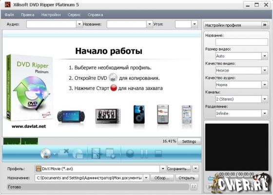 Xilisoft DVD Ripper Ultimate - мощная и удобная в использовании программа для копирования DVD-дисков с возможностью конвертирования содержимого в сообразные аудио и видео файлы типа AVI, MPEG, WMV, DivX, MP4, H.264, RM, MOV, M4V, XviD, 3GP, MP3, WMA, WAV, RA, M4A, AAC, AC3, OGG и т.д. Утилита способна делать файлы, совместимые с iPod, iPhone, PSP, Apple TV и прочими миниатюрными устройствами.
