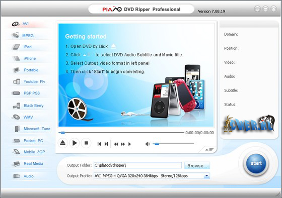 Kingdia DVD Ripper - удобная и легкая в использовании программа по переводу формата DVD в другие, почти все видео форматы. Программа поддерживает копирование DVD в AVI, Divx, Xivd, MPG, ASF, WMV и т.д. Вы можете получать удовольствие от просмотра любимых DVD в любом месте. Со встроенным устройством X-SPEED, данная программа до четырех раз быстрее других программ. Копируйте свои любимые DVD одним щелчком.