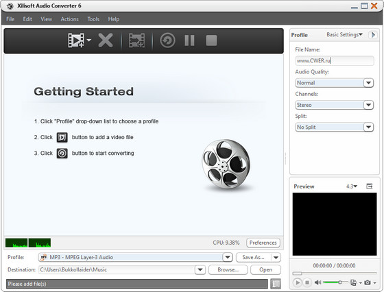 Xilisoft Audio Converter - программа для конвертации всех распространенных форматов аудио файлов, таких как MP3, WAV, M4A, WMA, MP4, WAV lossless, WMA lossless,FLAC, OGG и многие другие. Поддерживается пакетная конвертация, перенос информации из ID3-тегов, преобразование выделенного сегмента и извлечение аудио сегмента из видео файла, одновременная конвертация файла в различные форматы и разделение на несколько частей (функция Split File).