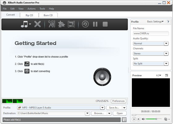 Xilisoft Audio Converter Pro является очень мощным все-в-одном профессиональным аудио конвертером для быстрого преобразования аудио, извлечения аудио, риппинга и создания аудио CD. Используя эту программу, вы легко сможете конвертировать любые аудио-форматы, так-же и MP3, WMA, WAV, AAC, FLAC, OGG, APE, извлекать аудио из всех известных видео-форматов, в том числе видео высокой четкости (HD), таких как AVI, MPEG, WMV, MP4, FLV, MKV, H.264/MPEG-4 AVC, AVCHD, рип аудио CD в различные аудио-форматы и создавать аудио CD из аудио и видео-файлов всевозможных форматов.