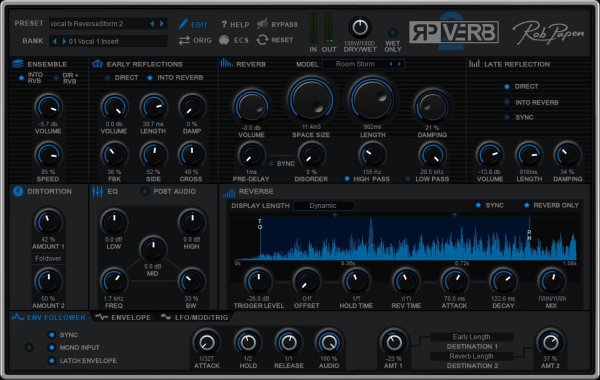 Выпустив RP-Verb, Rob Papen показали как может выглядеть и звучать хороший плагин-ревербератор. Помимо внушительного звучания, новый RP-Verb включает функцию реверса, которая позволяет существенно изменить характер реверберации, а также синхронизироваться с темпом и легко настраиваться, что даёт ещё один плюс для творческих экспериментов.