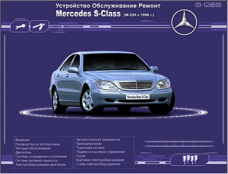 Мультимедийное руководство по ремонту, обслуживанию и устройству автомобилей Mersedes S-Class кузов W-220, выпуска 1998-2005 годов. В данном руководство подробно описаны технические характеристики автомобилей, устройство узлов и агрегатов. Представлены инструкции по проведения ремонта и наладки автомобиля.