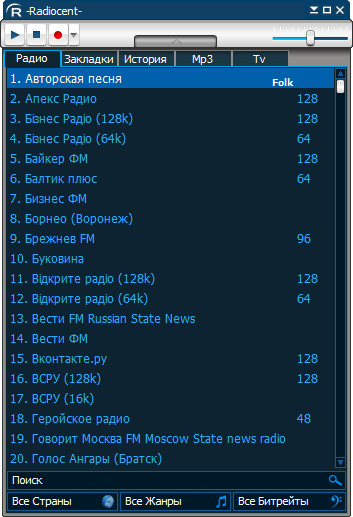 Radiocent - это онлайн радио и ТВ мирового уровня! В новой версии собрано более 50 тысяч работающих радиостанций и ТВ каналов.
