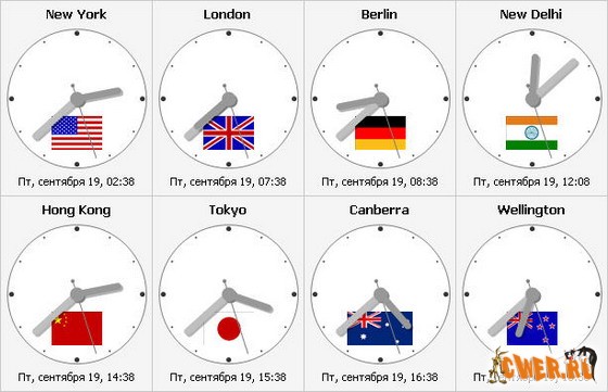Sharp World Clock - программа, предназначенная для показа мирового времени. Позволяет установить неограниченное число часов в линию или в виде таблицы. Внешний вид часов может иметь различный дизайн, так же часы могут быть цифровыми или обычными, с круглым циферблатом, часы способны показывать флаг страны и изменяемы в размерах от очень маленьких до полноэкранных. Программой поддерживается множество стилей. Настраиваемый список городов каждой страны мира. Вы сможете добавлять, изменять и редактировать города.