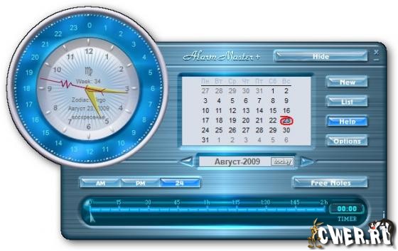 Alarm Master Plus - необычный мультифуннкциональный персональный органайзер, включающий в себя - будильник, планировщик, таймер и календарь. Будильник может воспроизводить музыку MP3, MPG, AVI или проговаривать сообщение, открывать документ или запускать другую программу. В программе используются новые технологии Microsoft Graphics Plus, аnti-aliasing и transparencydrawing, с помощью которых можно изменять прозрачность интерфейса программы и многое, многое другое.