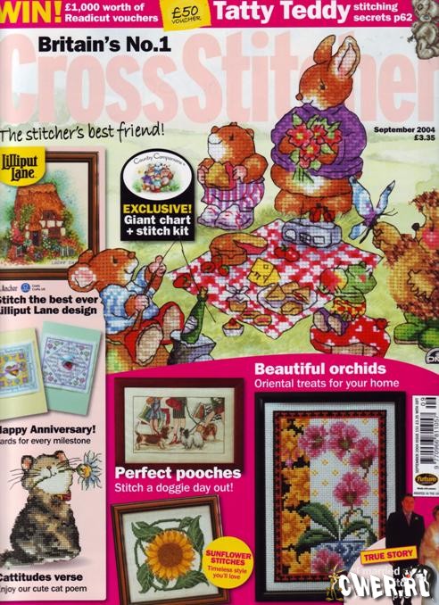 Английский журнал по вышивке крестиком, в котором схемы представлены в цветовой палитре DMC, Anchor и Madeira.