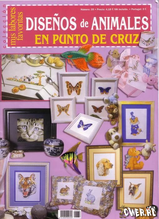 В книге содержится 39 вышитых крестиком картин и картинок с животными: кошки, собаки, аквариумные рыбки, дикие животные, бабочки и т.п.