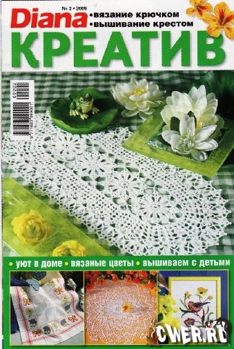 Журнал по вязанию крючком и вышивке крестиком. В этом номере: салфетки различных форм (овальные, круглые, в виде бабочек) и цветов, вышивка крестиком, занавески, вязанные цветы и многое другое.