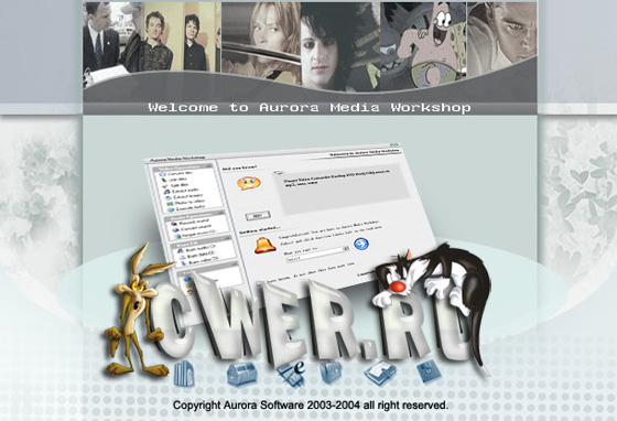 Aurora Media Workshop - является программой, включающий в себя полный спектр средств для работы с видео и аудио файлами. Аудио и видео конвертер, нарезка и соединение треков, граббер аудио CD, извлечение аудио из видео файлов, прожиг CD, создание видео CD из набора фотографий с множеством эффектов перехода, извлечение картинок (фреймов) из видео файлов, граббер DVD (VOB, DAT) в видео форматы, а аудио в MP3, WMA, WAV форматы, поддержка: AVI, MPEG1, MPEG2, ASF, WMV, VOB, DAT, DivX, XviD, MP3, WMA, WAV, OGG и других форматов.