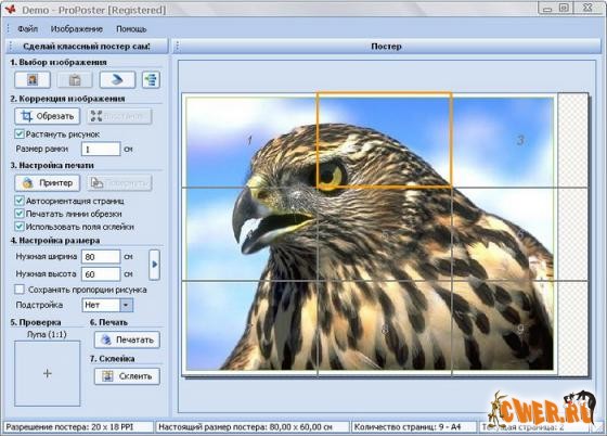 Обновилась программа ProPoster для распечатки плакатов стандартного (А0, А1, А2, А3) или заданного пользователем формата на листах меньших форматов. Программа автоматически разбивает изображение на нужное количество страниц.