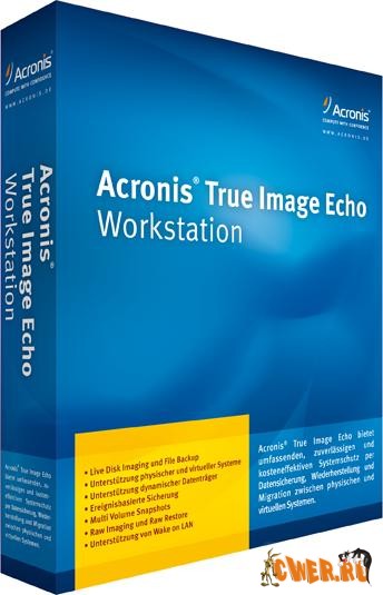 Acronis True Image Echo Workstation - профессиональная программа для резервного копирования и аварийного восстановления данных на настольных и портативных компьютерах. Является идеальным решением для резервного копирования и аварийного восстановления данных на отдельном компьютере или по всей локальной сети, имеющим широкий ряд опций, таких как возможность резервного копирования систем целиком или отдельных файлов и папок, аварийное восстановление отдельных файлов и папок или диска целиком, удаленное управление задачами резервного копирования и восстановления данных, восстановление систем на различное оборудование, и многих других. Поддержка как 64-разрядных, так и 32-разрядных версий ОС Windows обеспечивает эффективную защиту данных на компьютерах разных поколений. В случае фатальной ошибки программного или аппаратного обеспечения Acronis True Image Workstation позволит выполнить полное восстановление системы или восстановление отдельных файлов и папок. Система может быть восстановлена как на прежний компьютер, так и на новый компьютер с другими аппаратными средствами (в том числе на "голое железо") или на виртуальную машину.