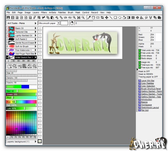 Pixarra TwistedBrush - программа для художников. Она имеет большое количество самых разнообразных инструментов для рисования, от красок до мелков и карандашей. Эта программа глубоко поражает буквально с первого запуска.