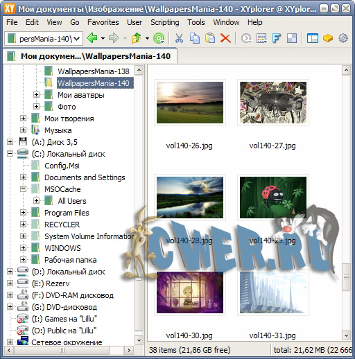 XYPlorer - продвинутый файловый менеджер, работающий под Win98/NT/ME/2000/XP/Vista, достойная замена проводнику Windows, с поддержкой вкладок. Мощный поисковый механизм; просмотр мультимедийных файлов (графика, аудио, видео); HEX и ASCII вьюер файлов; работа с mp3-тегами; широкие возможности для визуализации (выделение цветом избранных папок и пр.); формирование фильтров отображения файлов; экспорт информации о файлах в CSV формат и многое другое.