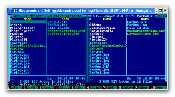 Far Manager - консольный файловый менеджер для операционных систем семейства Windows. Программа предоставляет удобный интерфейс пользователя для работы с файловыми системами (реальными и эмулированными) и файлами: просматривать файлы и каталоги; редактировать, копировать и переименовывать файлы; и многое другое. Far Manager 2.0 теперь Open Source! Такой, каким вы хотите его видеть Far Manager имеет многоязычный, легко настраиваемый интерфейс. Простую навигацию по файловой системе обеспечивают цветовое выделение и группы сортировки файлов. Под ваши задачи.