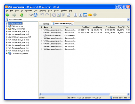 XYPlorer - продвинутый файловый менеджер, работающий под Win98/NT/ME/2000/XP/Vista/W7, достойная замена проводнику Windows, с поддержкой вкладок. Мощный поисковый механизм; предосмотр мультимедийных файлов , графики, аудио, видео; HEX и ASCII просмотрщик файлов; работа с mp3-тегами; широкие возможности для визуализации (выделение цветом избранных папок и пр.); формирование фильтров отображения файлов; экспорт информации о файлах в CSV формат и многое другое. XYplorer не оставляет записей в реестре, поэтому возможна работа со сменных носителей, например с флеш носителях.