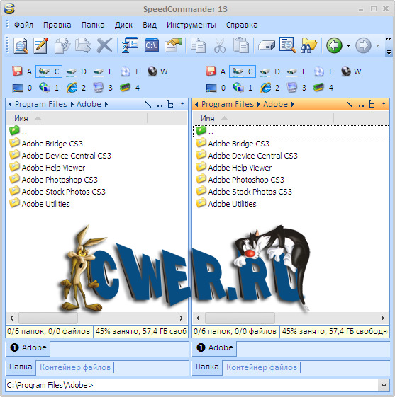 SpeedCommander - файловый менеджер с многочисленными, в том числе и уникальными, возможностями по работе с файлами. Из не совсем обычных функций имеет смысл обратить внимание на мощную систему шифрования файлов (файлы сжимаются - внутренняя поддержка ARJ, ZIP, LHA, RAR, CAB, ACE, GZIP, TAR и UUE, затем шифруются по стойкому алгоритму DES, а потом ещё и их названия можно защитить паролем). Кроме этой довольно редко встречаемой опции, в SpeedCommander имеется встроенная поддержка просмотра около восьми десятков графических и текстовых форматов; есть полнофункциональный текстовый редактор с подсветкой синтаксиса и не менее полнофункциональный FTP-клиент.